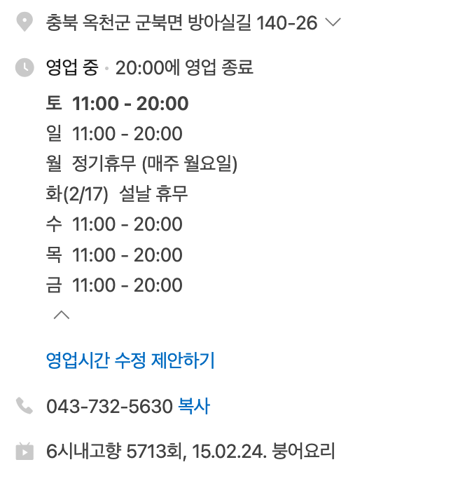 📍 주소 : 충북 옥천군 군북면 방아실길 140-26