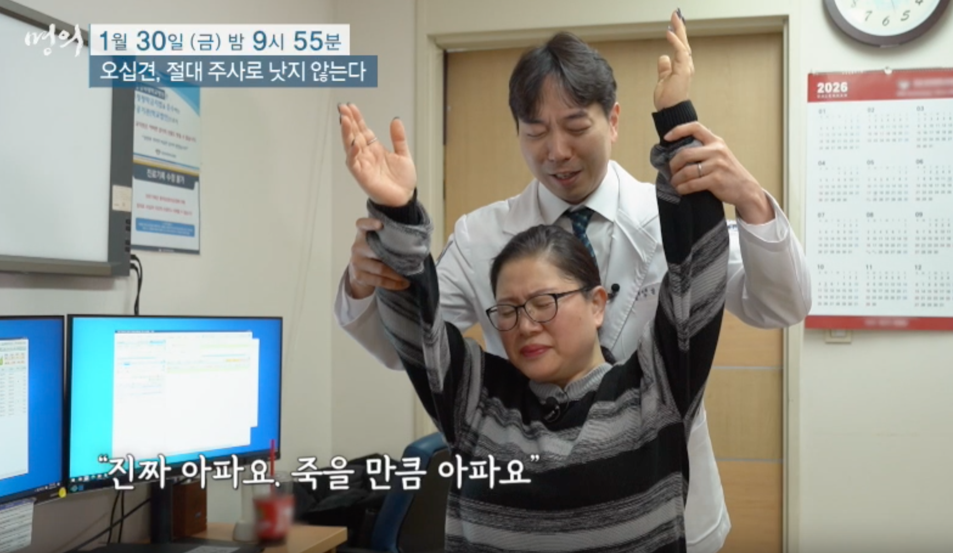 2026년 1월 30일 명의 헬스케어에서 강동경희대병원 정형외과 김명서 교수가 설명하는 오십견 치료와 스트레칭. 주사로 낫지 않는 오십견의 원인과 어깨 관절 회복에 도움이 되는 3가지 스트레칭 방법을 정리했다.