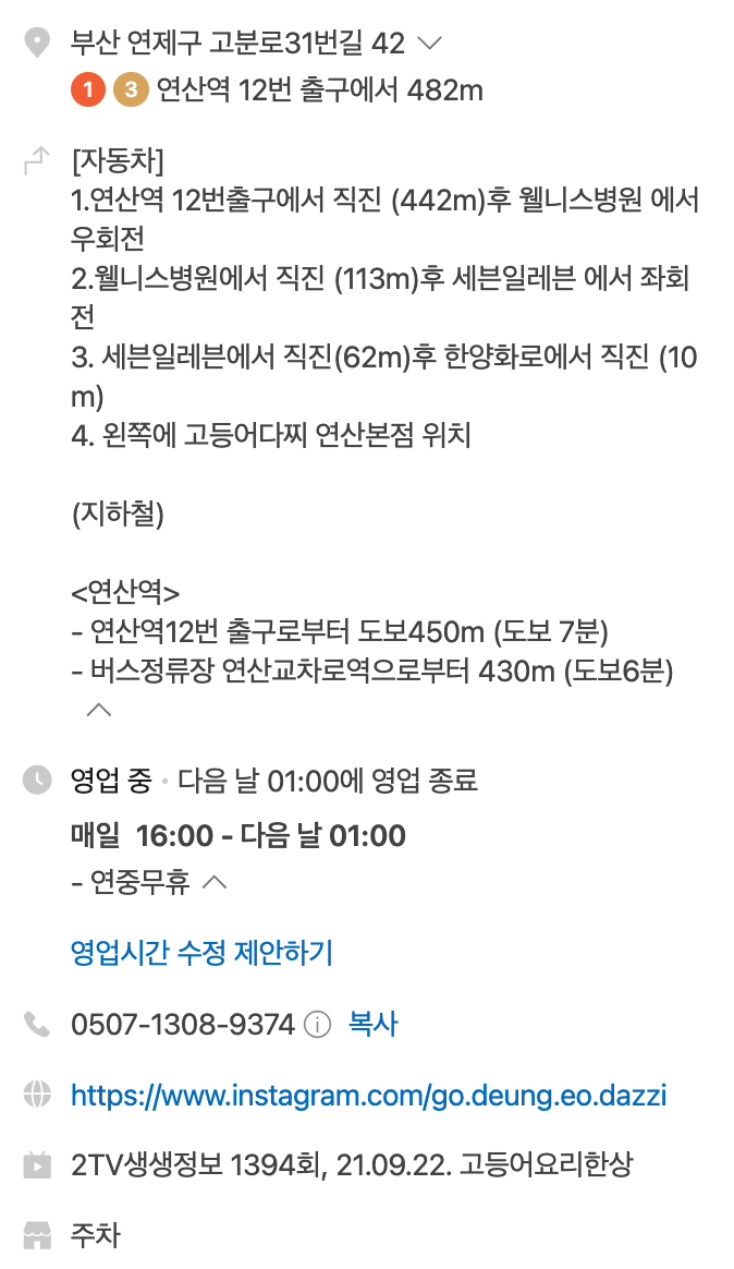 - 상호명: 고등어다찌 연산본점