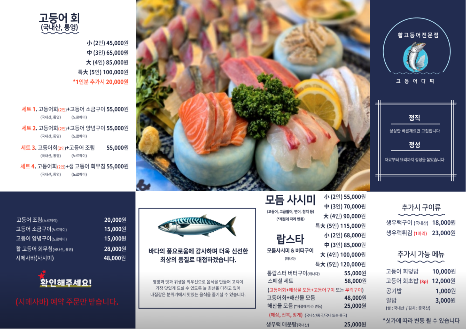 고등어를 활용한 메뉴가 다양하게 준비되어 있다.