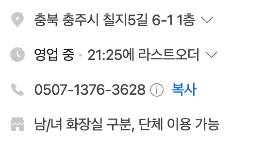 - 주소 : 충북 충주시 칠지5길 6-1 1층