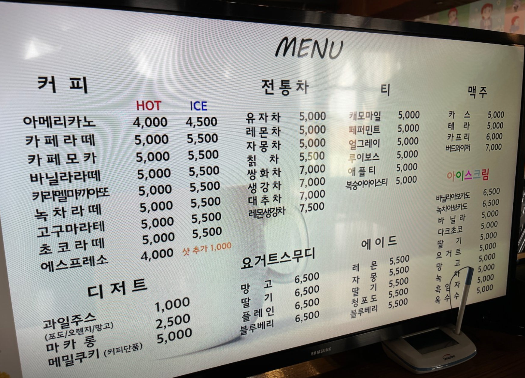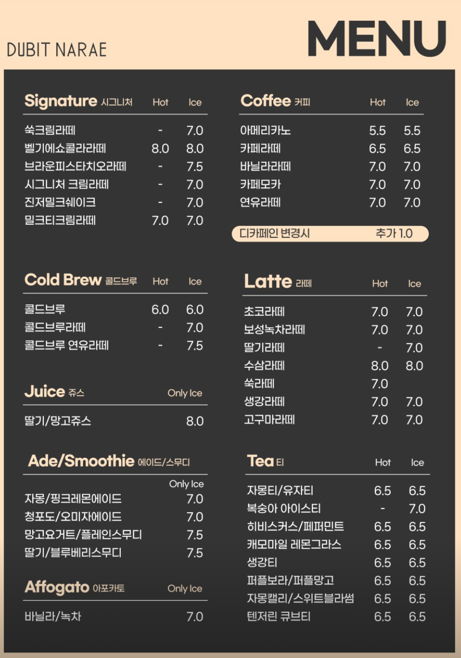 커피와 디저트, 요거트 스무디 등