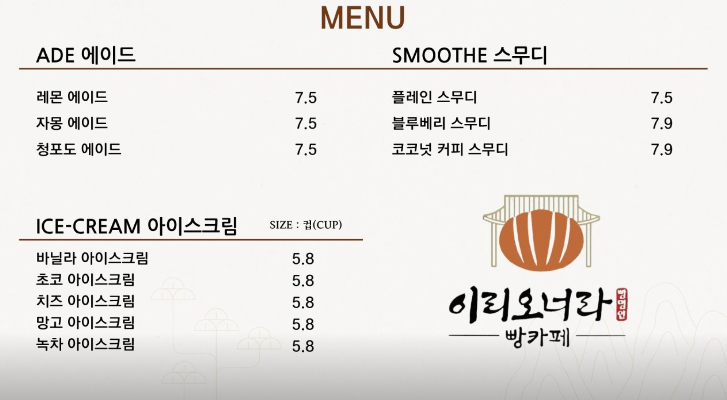 - 상호 : 이리오너라 빵카페