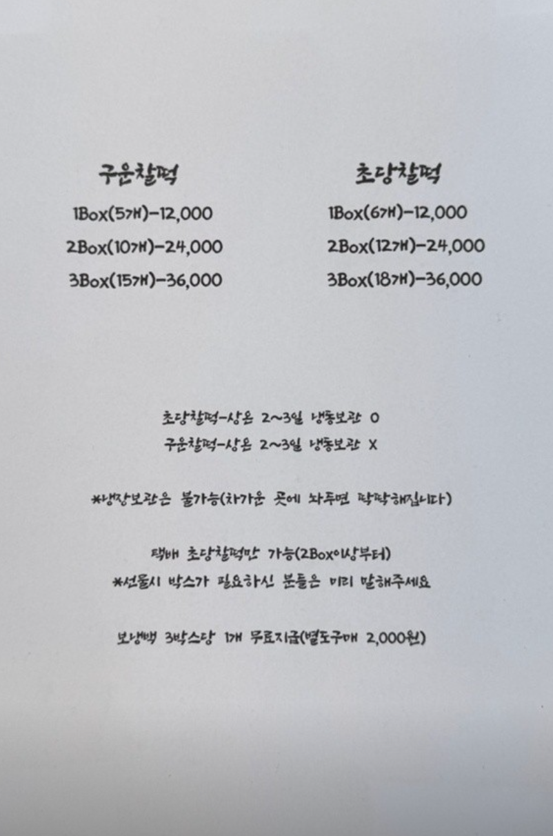 - 초당찰떡 → 상온 2~3일, 냉동보관 가능