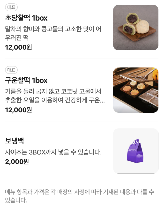 ✔ 택배는 초당찰떡 2Box 이상만 가능