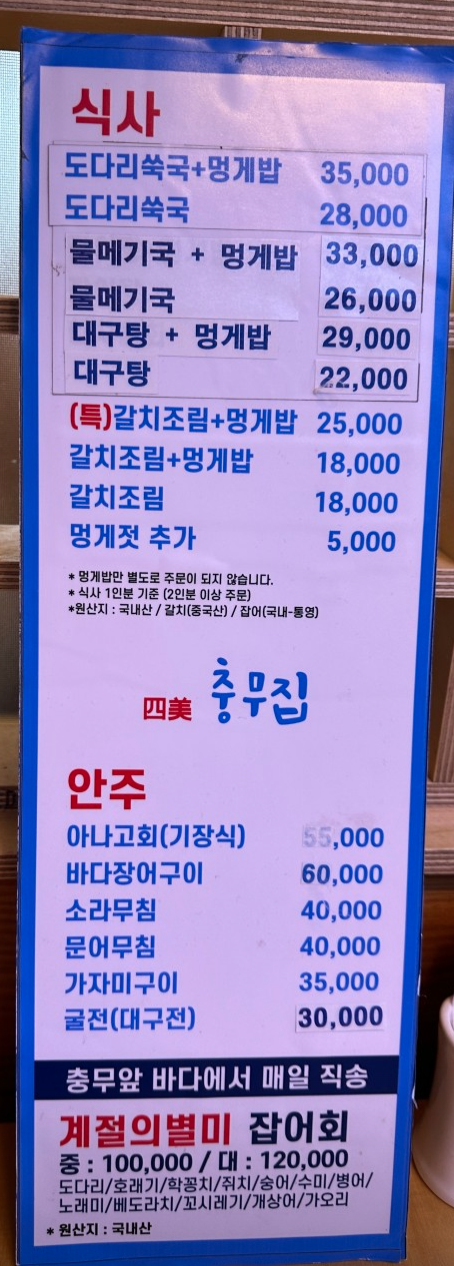 충무집은 제철 해산물 중심의 메뉴와 안정적인 맛으로