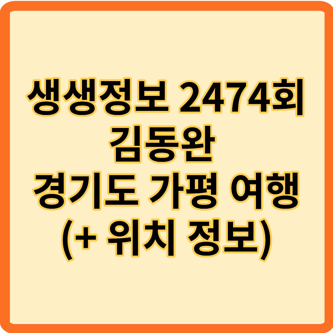 가수 겸 배우 김동완이 소개한 경기도 가평군 여행 이야기. KBS 생생정보 2474회에서 어비계곡, 설악오일장, 닭볶음탕 맛집과 양떼목장까지 가평의 자연과 일상을 담았다.