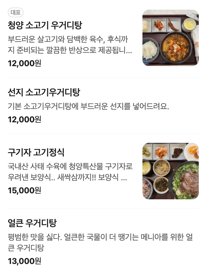 - 대표 메뉴 : 구기자 소고기 우거지탕