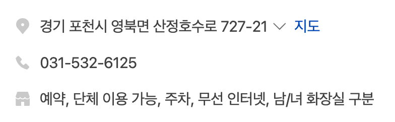 - 위치 : 경기도 포천시 영북면 산정호수로411번길 83-78