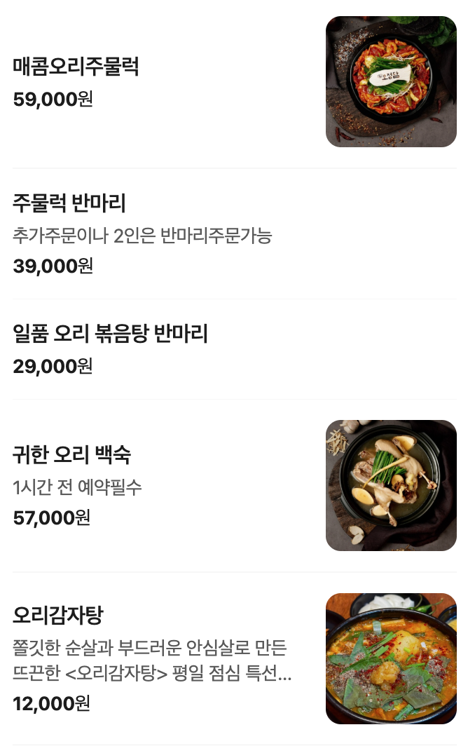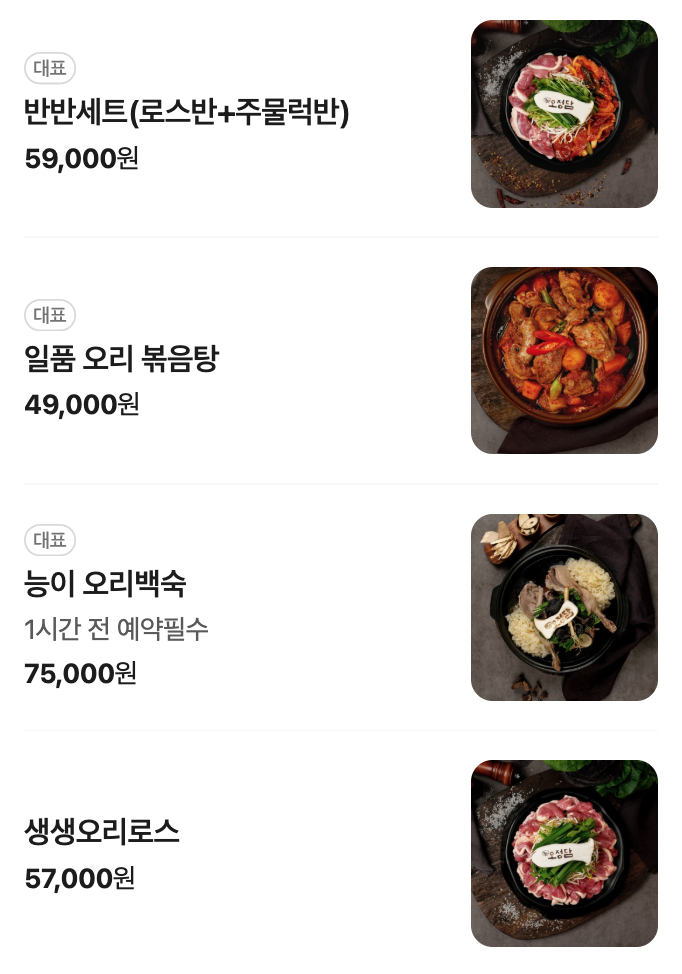 ✤ 대표 메뉴 – 특급 보양식 오리볶음탕