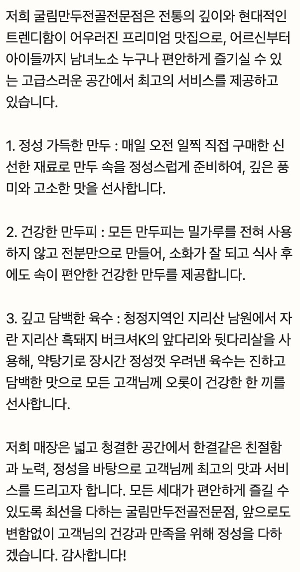만두와 조화를 이루며 한 끼 식사로 충분한 만족감을 준다.