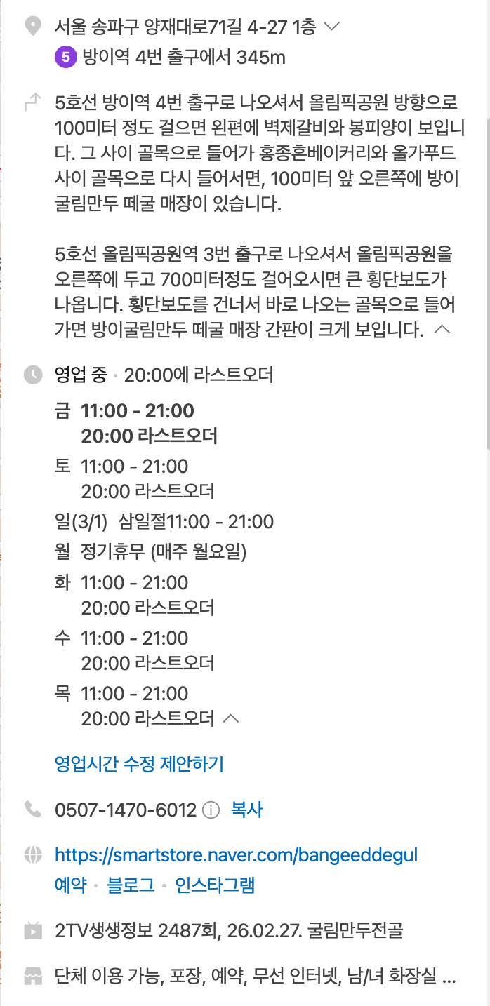 방이굴림만두떼굴 방이본점은