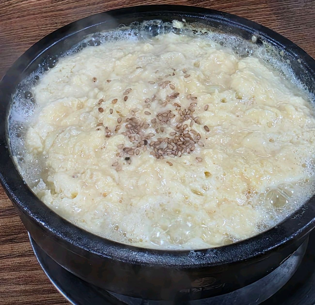 뚝배기 안에서 몽글몽글 풀린 계란과