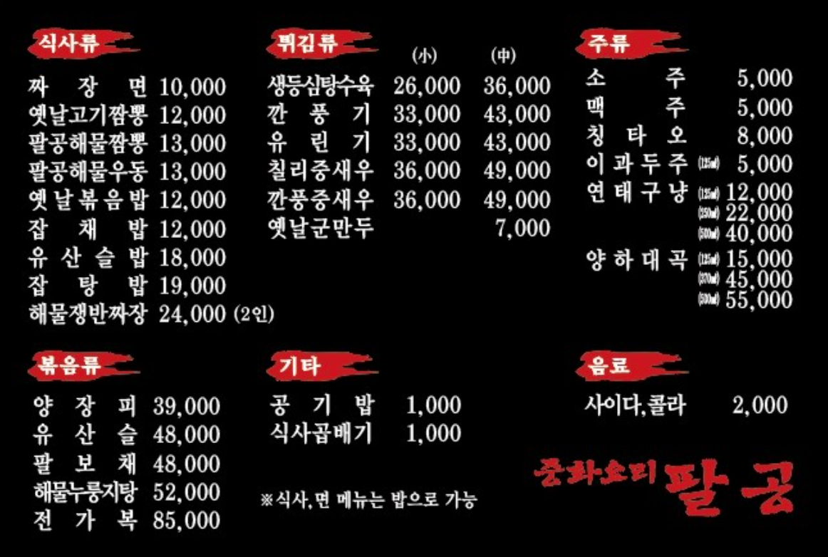 관악구 신림동에 위치한 중화요리 팔공은 해물짬뽕과 유린기로 사랑받는 곳이다.