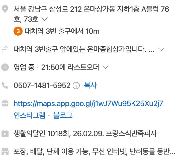 - 위치 : 서울 강남구 삼성로 212 은마상가 지하 1층 A블럭