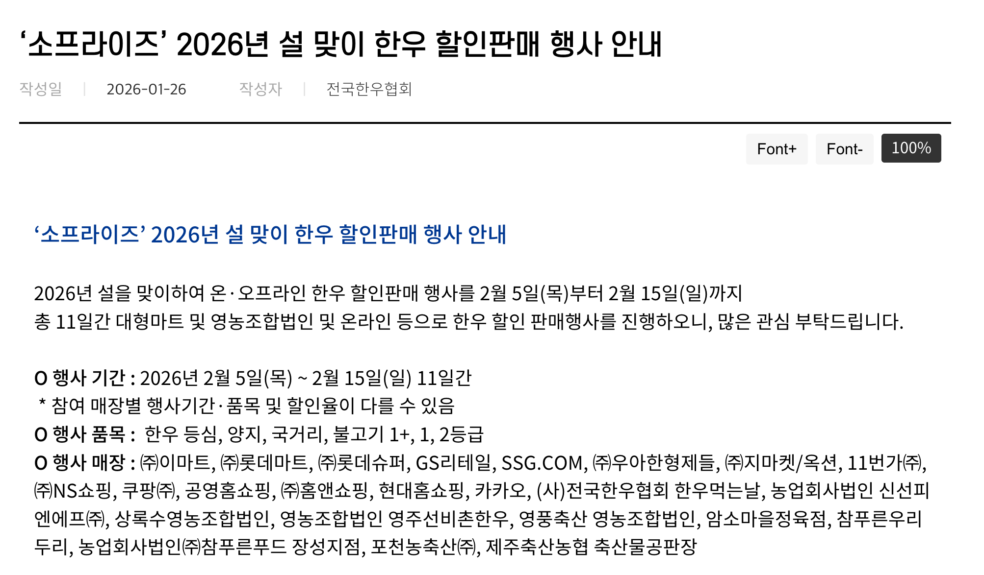 ✤ 오늘부터 시작! 설맞이 <소프라이즈> 한우 할인 행사 총정리