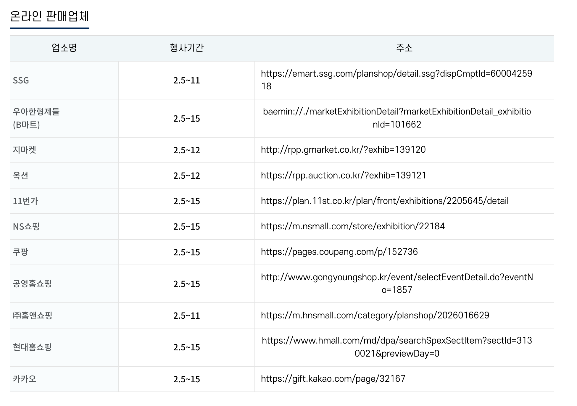 - 전국 대형마트 (이마트, 롯데마트, 롯데슈퍼, GS리테일)