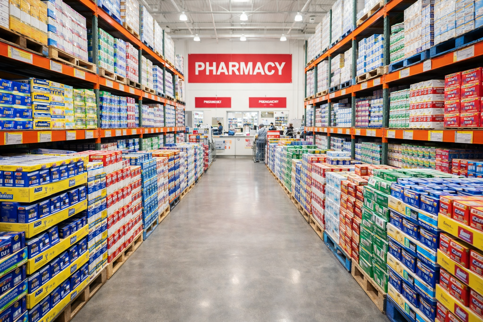 창고형 약국은 대형마트처럼 넓은 공간에 의약품과 건강기능식품을 박스 단위로 진열하는 형태의 약국입니다.