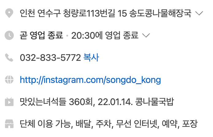 ✤ 송도콩나물해장국 기본 정보