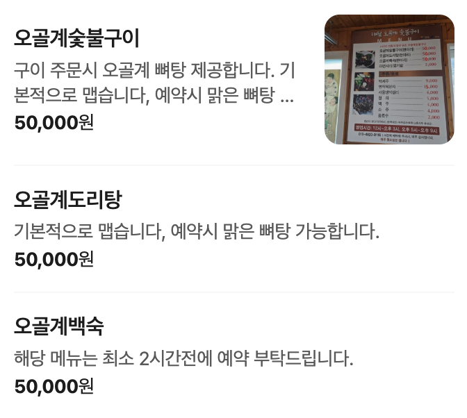 오골계 백숙은 최소 2시간 전 예약이 필요하다.