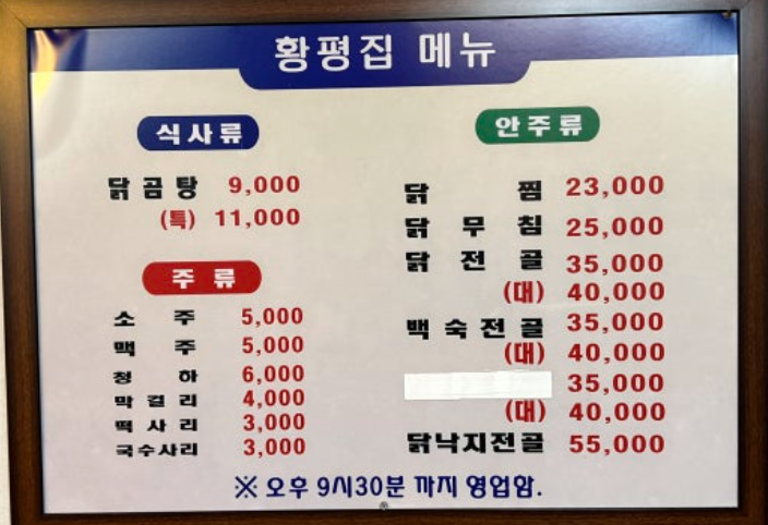 상호명 : 황평집닭곰탕